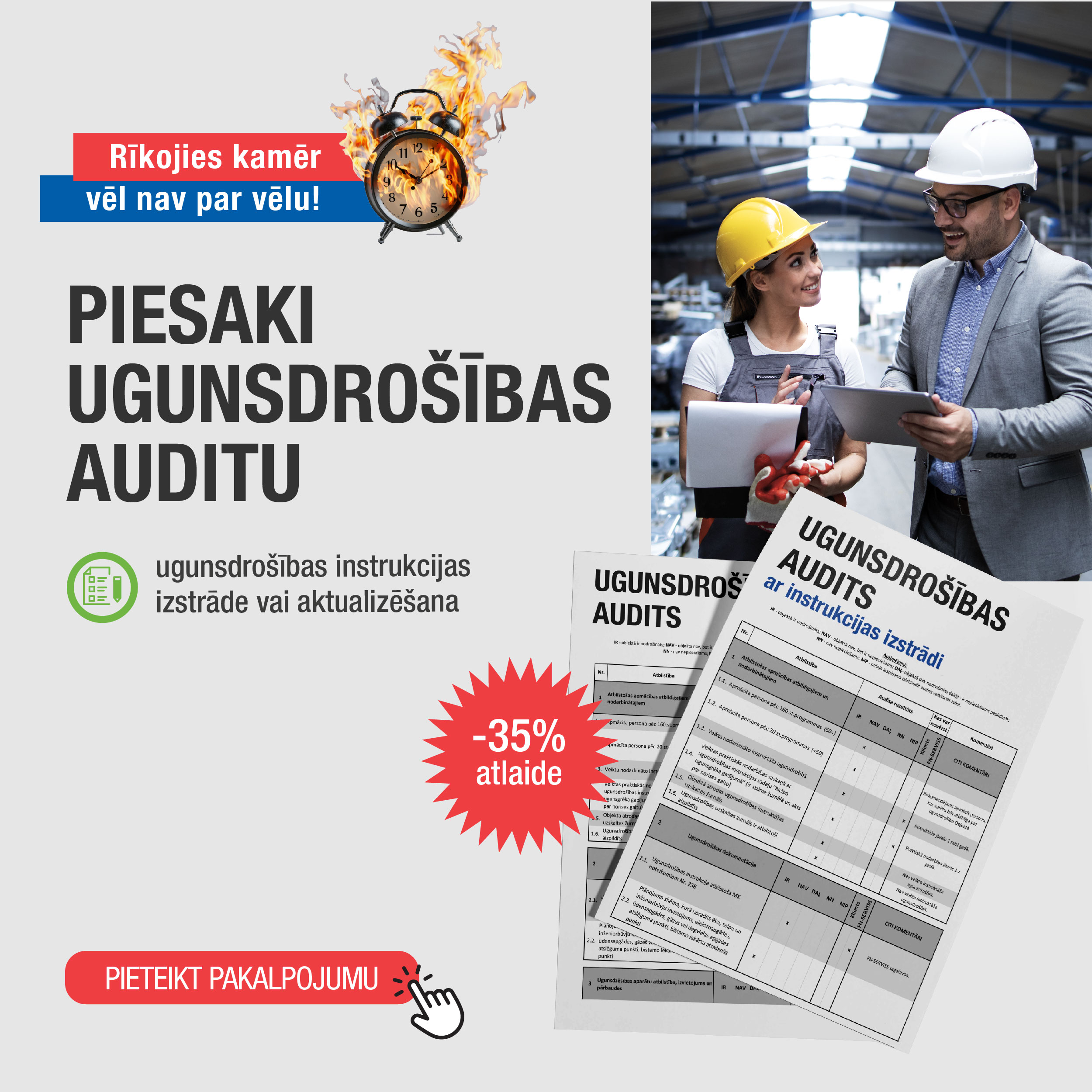 STOP nelaimei - rīkojies! Katru gadu notiek ap 7000 uguns nelaimju, kas posta dzīvojamajās ēkas un uzņēmumu teritorijas, un to cēloņi ir dažādi. Februāra un Marta Īpašajā piedāvājumā FN-SERVISS aicina apzināt iespējamos uguns nelaimju riskus un veikt preventīvos pasākumus, lai pasargātu sevi, savu mantu un īpašumu no postījuma draudiem.
