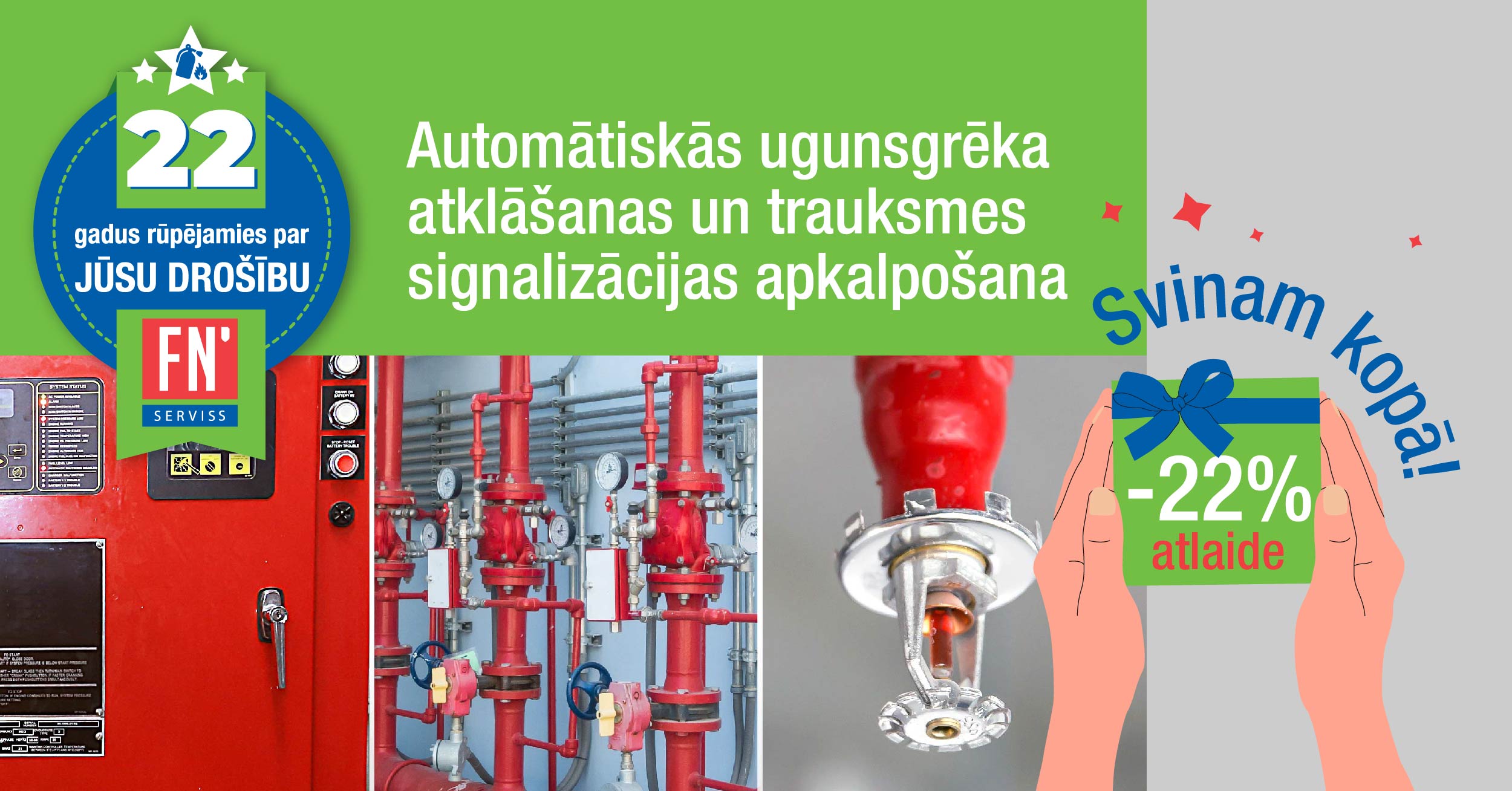 Parūpējies par sava uzņēmuma ugunsdrošību un rezervē FN-SERVISS tehnisko speciālistu laiku jau šodien ar -22% atlaidi