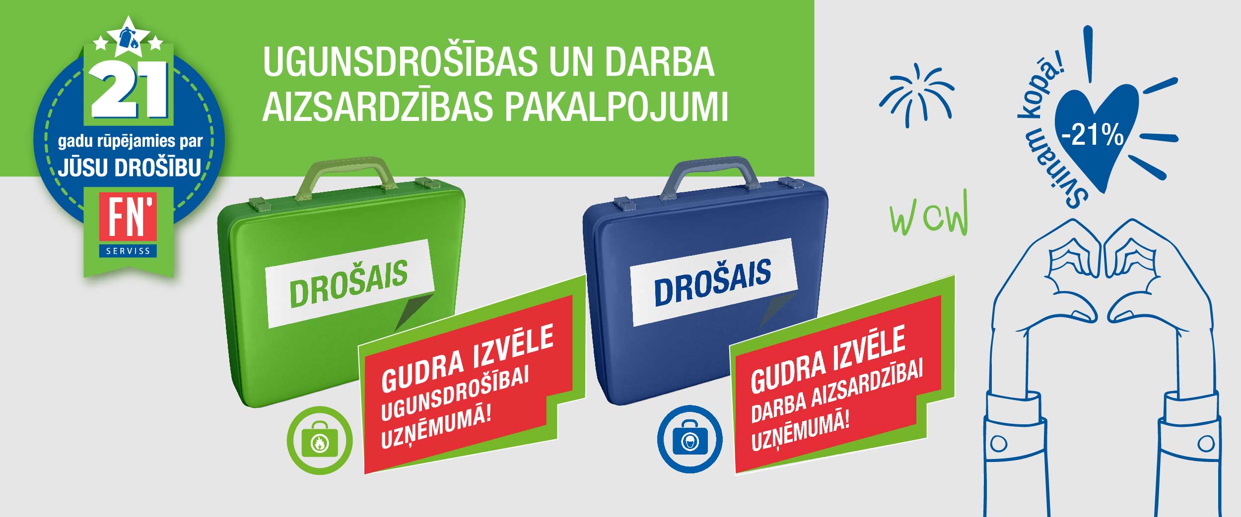 Jau 21 gadu esam kopā ar Jums, lai veicinātu drošību uzņēmumos, mājsaimniecībās un sabiedrībā!